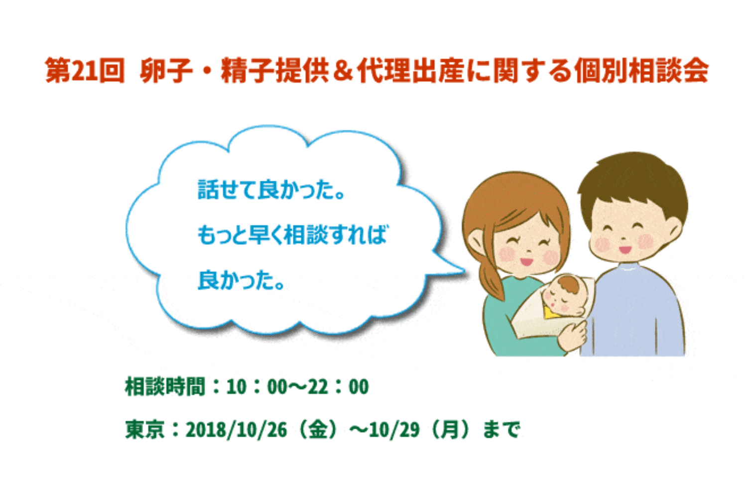 ホーム » ニュース » 第21回 卵子・精子提供&代理出産に関する個別相談会開催のお知らせ