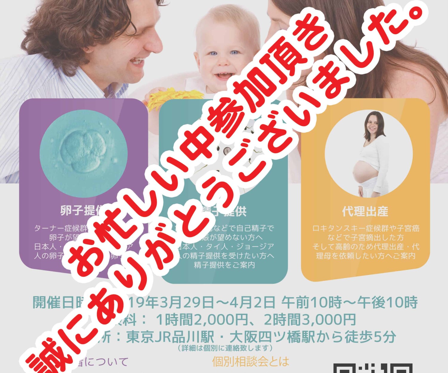 個別相談会のご報告 08 4月 2019 第22回個別相談会のご報告 皆さま、お元気ですか?สวัสดีค่ะ 日本人スタッフの加地 茜(かじ あかね)です。 今回は、2019年3月29日から3月30日まで大阪で、3月31日から4月2日まで東京で開催した、第22回個別相...続きを読む 加地 茜